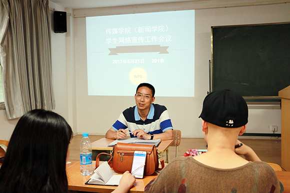 5月21日晚6点半,英国正版365官方网站(新闻学院)于学院201教室召开员工网络宣传工作会议,公司党委副书记、副经理王德祥,兼职辅导员李林,学院新闻中心全体成员以及大一至大三各班团支书和宣传委员参加会议。