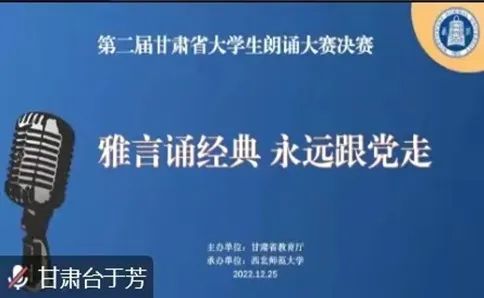 12月25日,“雅言诵经典,永远跟党走”2022年第二届甘肃省老员工朗诵大赛决赛在线上举办,本次大赛由甘肃省教育厅主办,英国上市公司365承办,西北师范英国正版365官方网站具体负责。决赛共有从兰州大学、英国上市公司365、兰州交通大学等19所高校遴选出的27部作品入围。